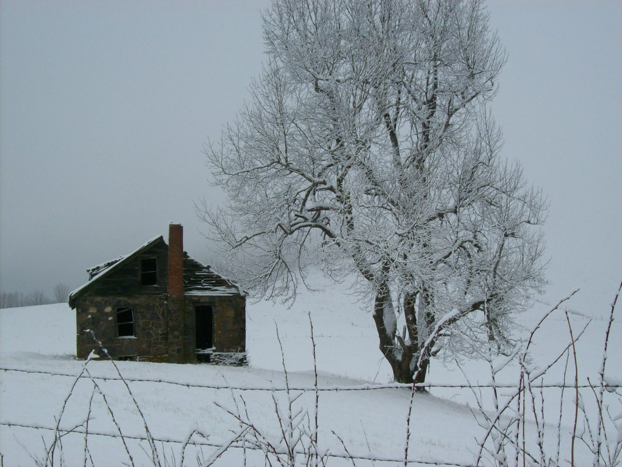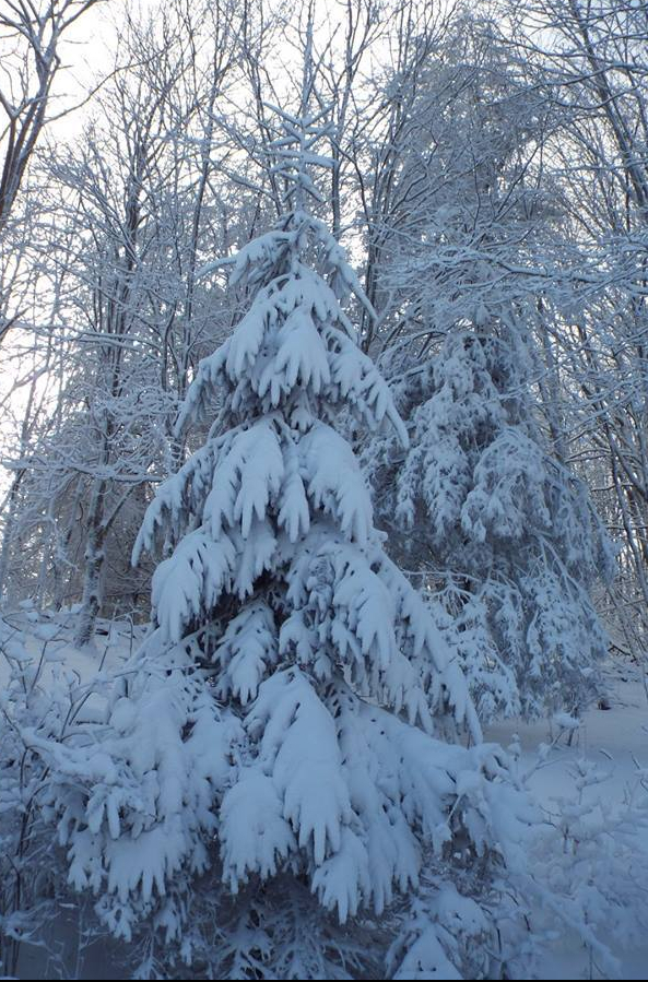 If the snow is preceded by hoar frost, feathery ice crystals that attach themselves to every outdoor surface, the whole world becomes white—every branch of every tree, every pine needle, every fence post and metal structure, everything. It almost makes my heart ache.