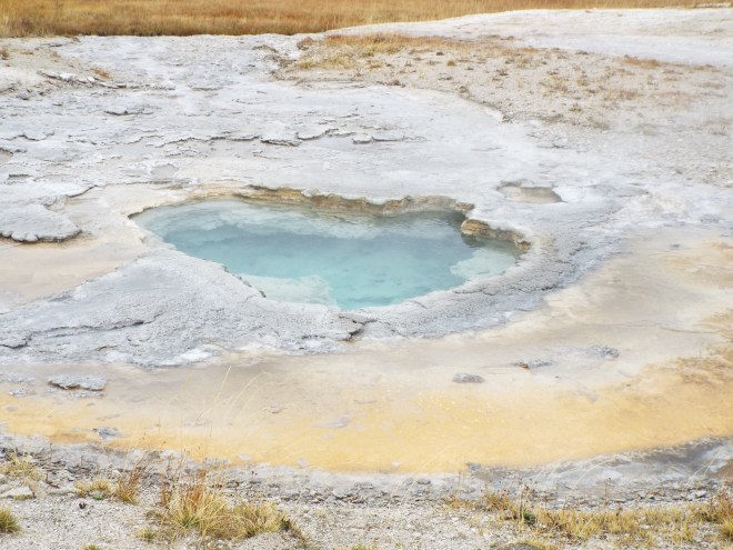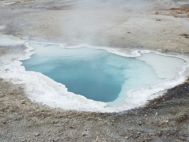 It took us a while to figure out that all those white wisps we were seeing off in the distance weren’t fog, but geysers. I’d forgotten that Old Faithful wasn’t the only one. There are actually 500 geysers and 10,000 thermal features in all. In other words, they’re everywhere!