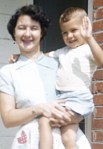 1950–Mom flanked by my brother Alan and me. She made all the clothes, probably including Alan’s cap and my pocketbook.